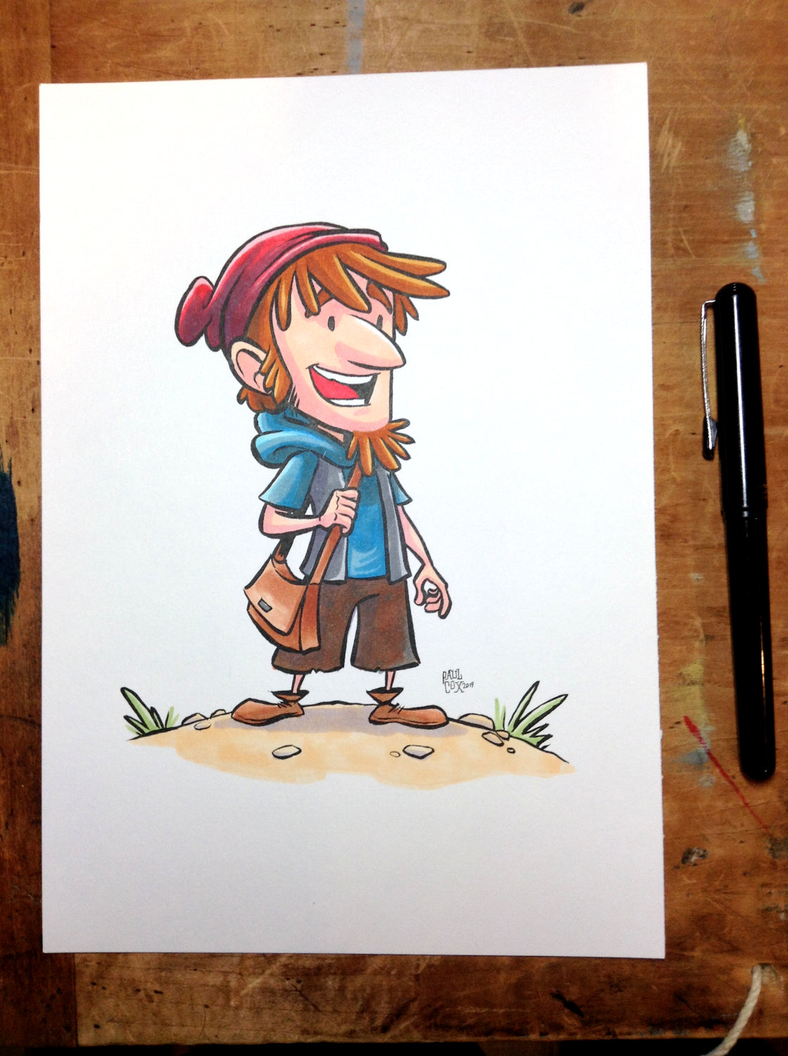 One original inked and colored character drawing of a character from “The Pilgrim’s Progress: A Poetic Journey” (The original pictured)