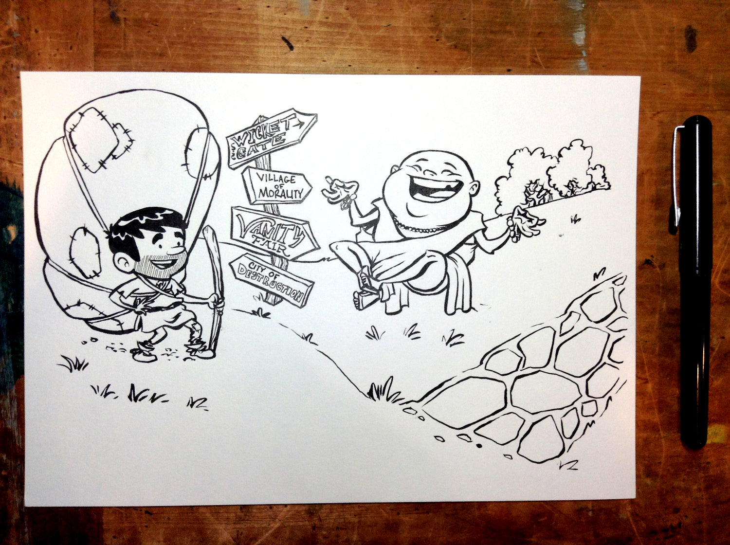 Pilgrim’s Progress Original Art - Christian Meets Worldly Wiseman