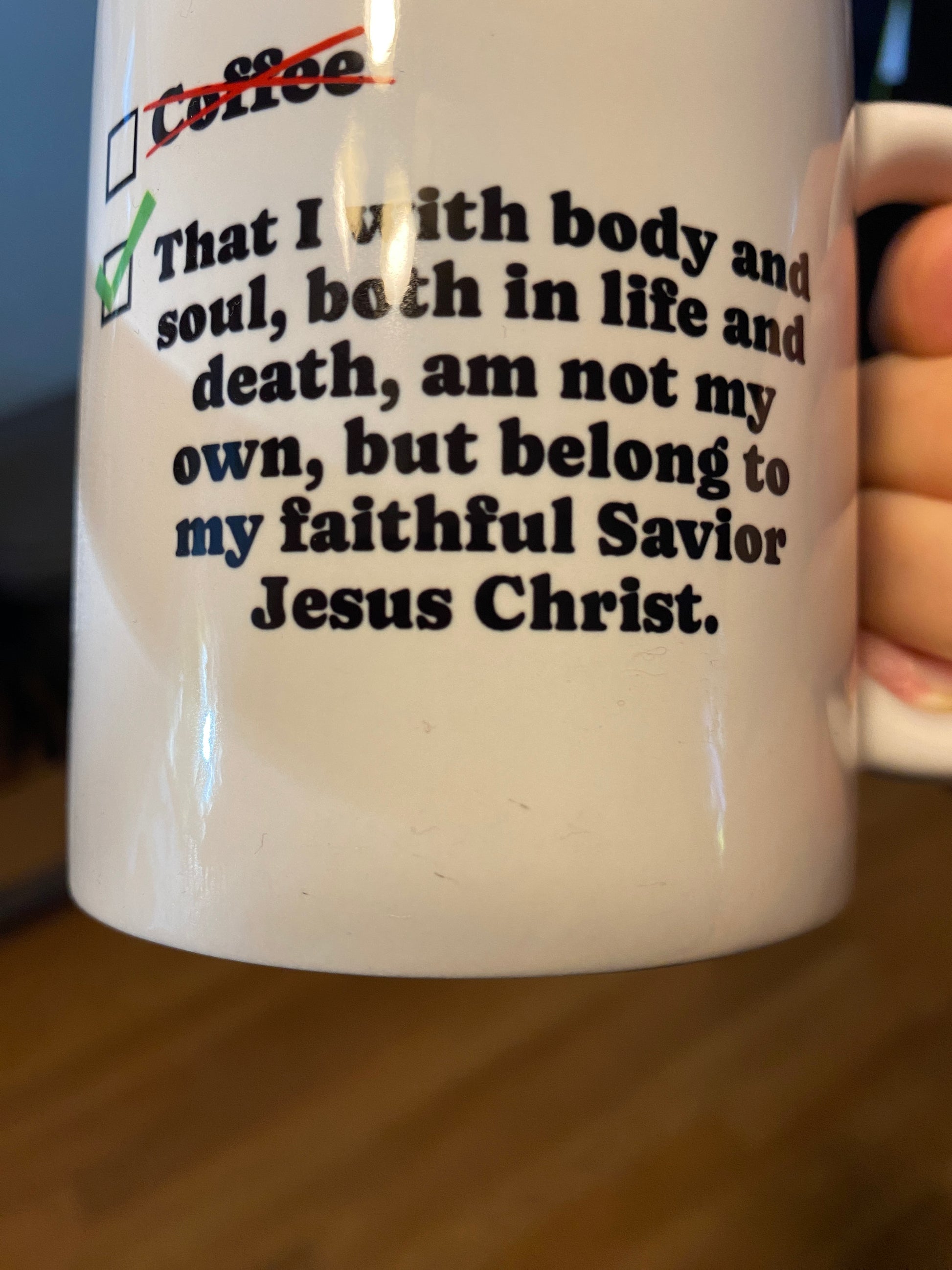 Discounted: Only Comfort Mug - dust spots were burned onto the image under the bottom row during the printing process.