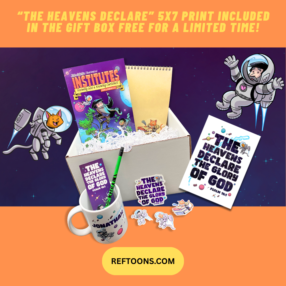 The perfect bundle for theology lovers, comic readers, and thoughtful gift-givers! This curated gift box features John Calvin’s Illustrated Institutes: Book 1—a beautifully illustrated, engaging adaptation of Calvin’s classic work. Alongside the book, you’ll find a themed sketchbook, a color changing pencil, a matching bookmark, and 4 collectible stickers featuring characters from the book.