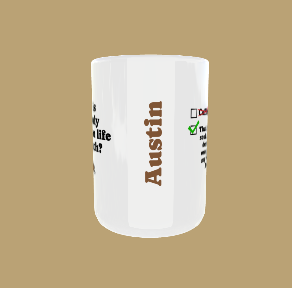 My imaginative, quality cup is everything I hoped for. Its large handle (15 oz) is terrific for clutching in the morning. Its message speaks the Best News and will open opportunities for discussion. Well done!