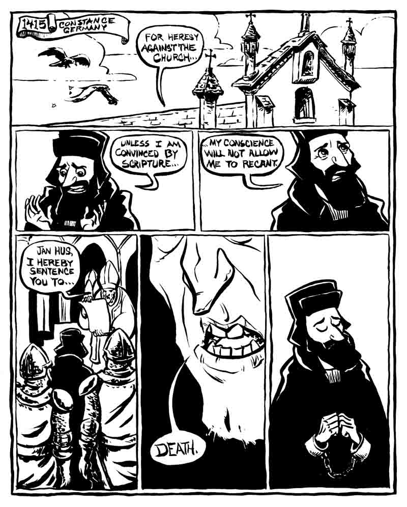 102 years after Hus’ declaration, Martin Luther nailed his 95 theses to the doors of the church in Wittenberg, starting the protestant reformation.